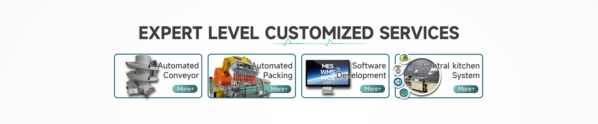 Committed to providing customers with customized smart factory logistics packaging process overall solutions, including central kitchen assembly line equipment, automated three-dimensional warehouse, non-woven packaging production line, AGV truck, and supporting MES production management system, WMS and WCS intelligence Warehouse management system. Specializing in the design and manufacture of complete sets of automated equipment for intelligent warehousing, handling, transportation and packaging in the pharmaceutical, food, chemical, and logistics industries.