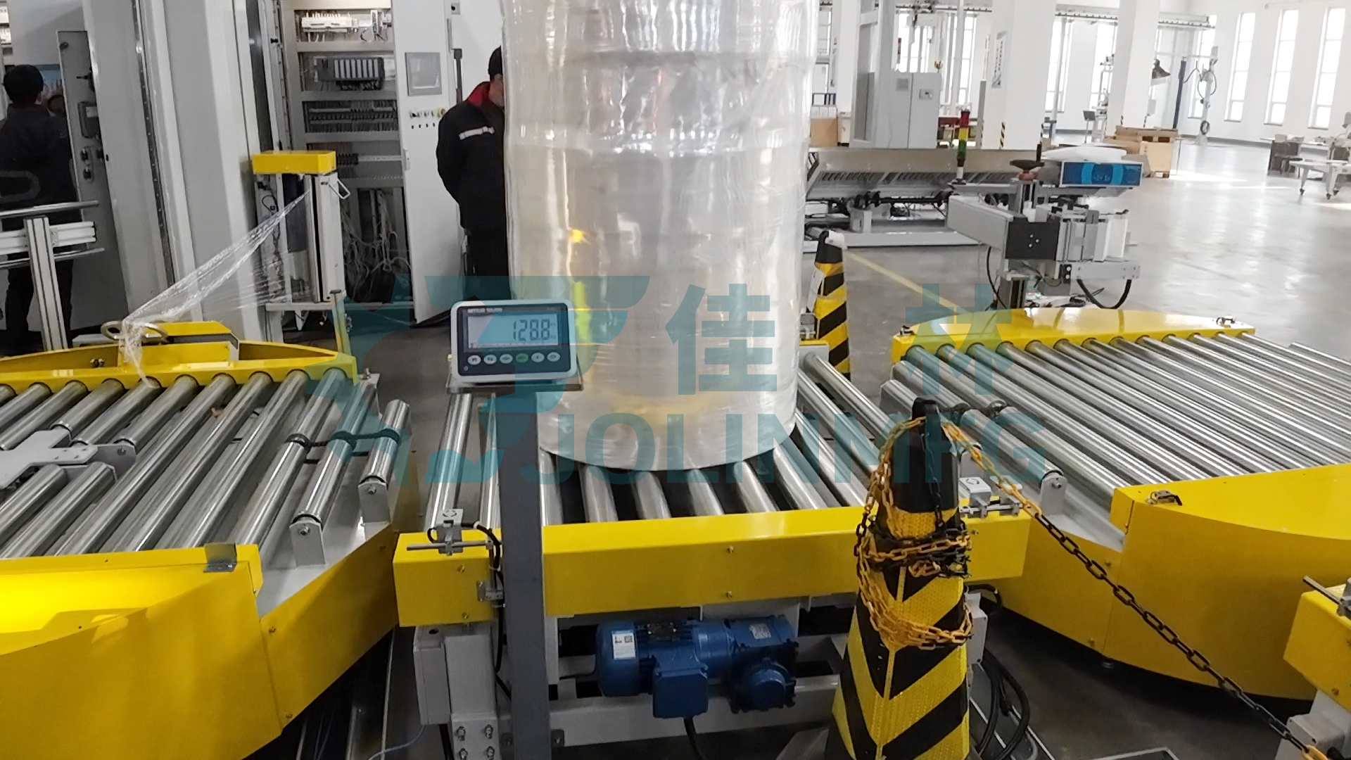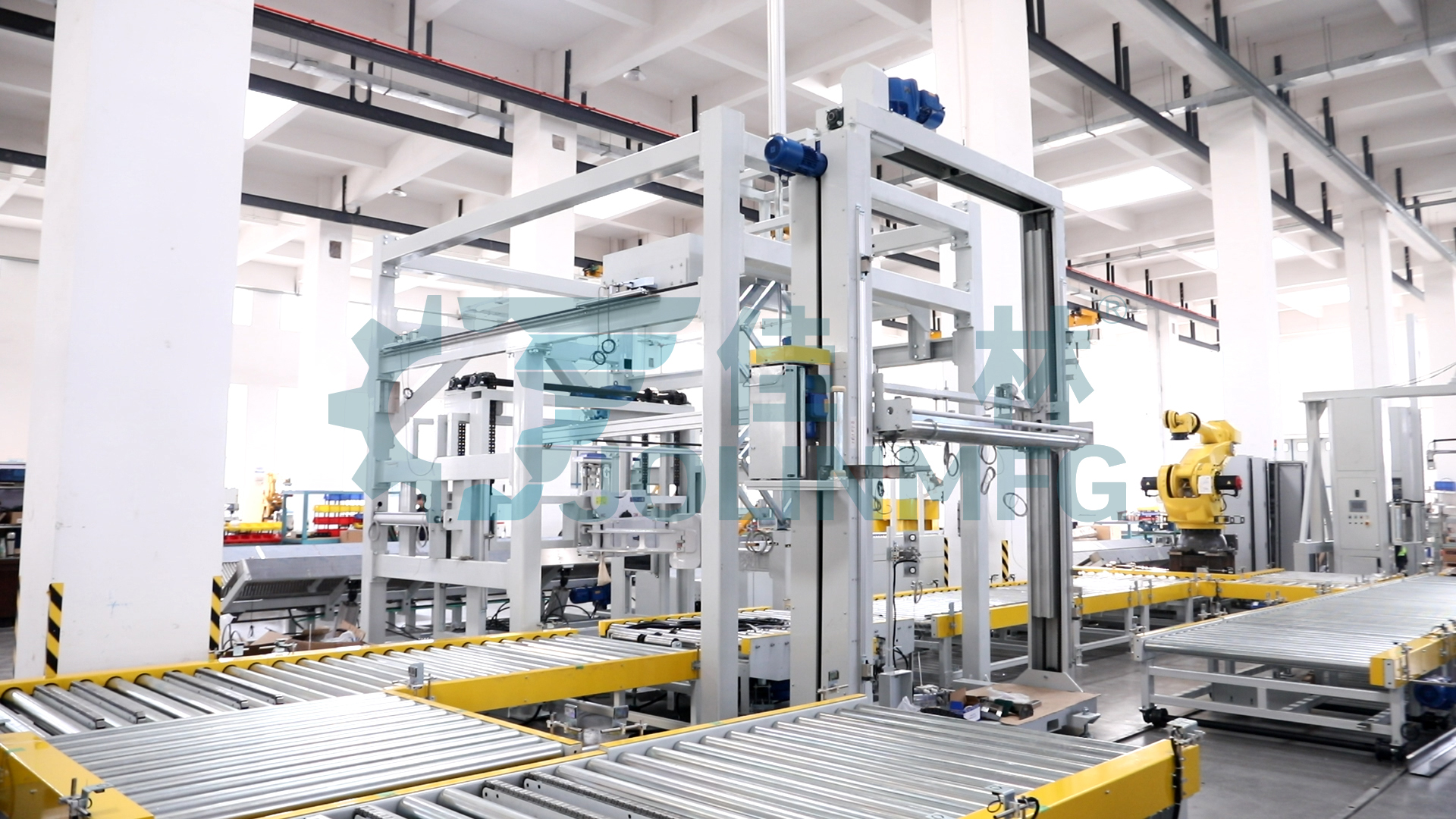 佳林“無紡布自動(dòng)包裝線”集ERP和MES系統(tǒng)、周轉(zhuǎn)搬運(yùn)、生產(chǎn)線合流、機(jī)器人自動(dòng)碼垛、自動(dòng)放紙板、自動(dòng)纏膜打包、自動(dòng)覆頂膜、自動(dòng)尼龍袋纏繞包裝、自動(dòng)稱重、自動(dòng)打印貼標(biāo) 、自動(dòng)翻轉(zhuǎn)下線、自動(dòng)入庫、立體倉庫等下游流程。