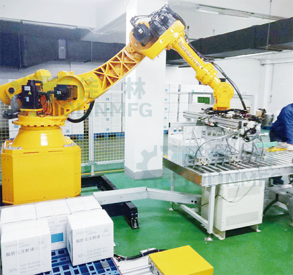 Six axis robot each axis motor to drive gear reducer, six action mode and direction of the shaft is different, to simulate the joint action of a man's hand, adapted to the pharmaceutical, beverage, food, beer, plastic, electronic and other production enterprises to cartons, bags, cans, boxes and other products with different shape gripper for the pallet using the crib, can also be applied to the welding assembly work, Can be set in a narrow space, running control can be operated on the control screen. Can work all day, equipped with mechanical gripper can replace workers for packing and stacking handling operation, save labor cost, improve production efficiency.